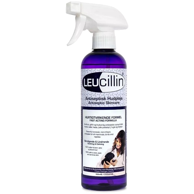 Leucillin Antiseptisk Hudpleje til Hund og Kat er en hurtigtvirkende antiseptisk hudpleje til effektiv rensning af sår, skrammer og irriterede hudområder.