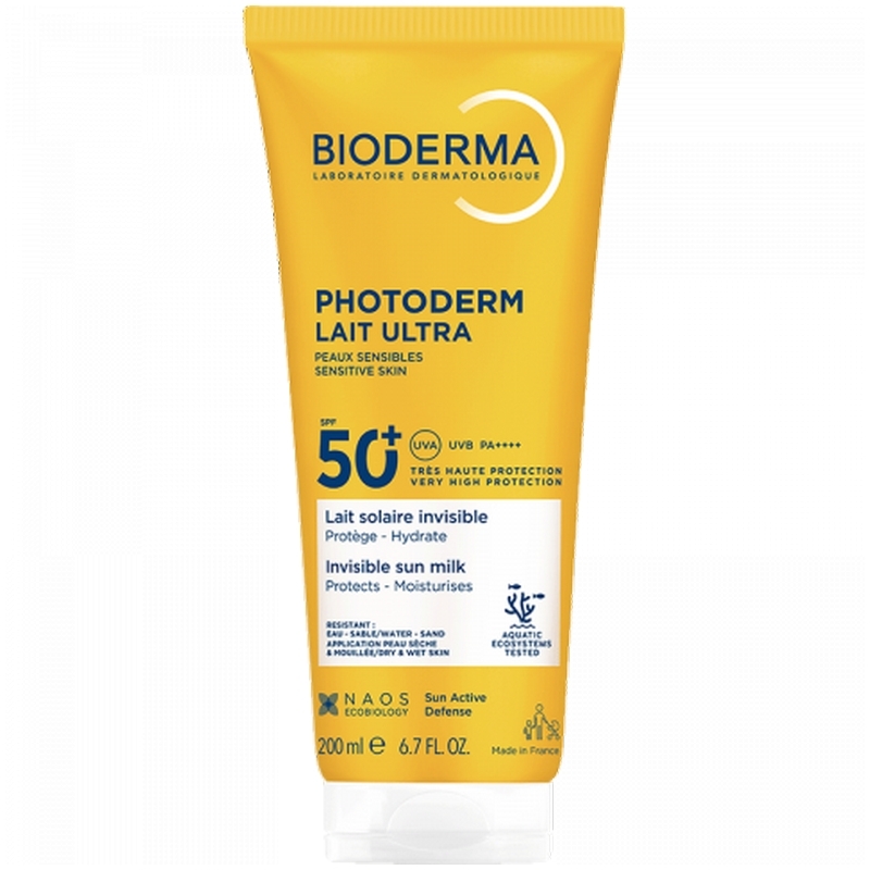 Bioderma Photoderm Lait Ultra Invisible Sun Milk SPF50+ er en solbeskyttende lotion med meget høj beskyttelse til både ansigt og krop.