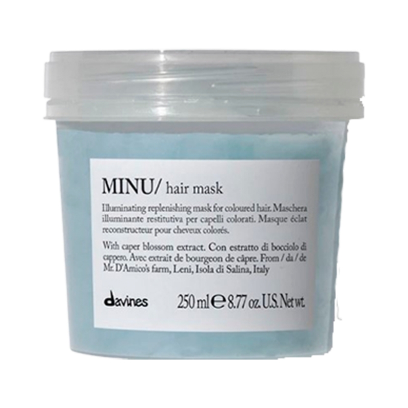 Davines Essential MINU Hair Mask er en nærende hårmaske, udviklet til farvebehandlet hår. Masken hjælper med at pleje håret i dybden og bevare hårfarvens glans.