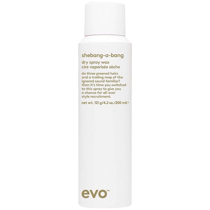 EVO Shebang-a-bang Dry Spray Wax er en tør sprayvoks, der tilfører håret fleksibel tekstur og let hold med en naturlig satin finish.