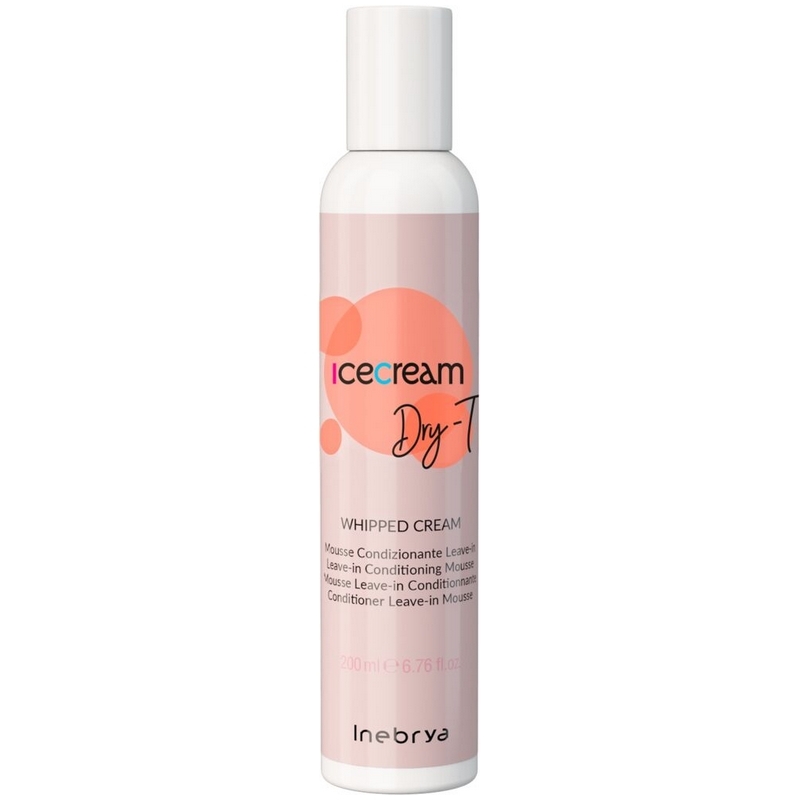Inebrya Icecream Dry-T Whipped Cream er en leave-in-mousse, der er ideel til at fugte længder og spidser af naturligt og behandlet hår, især tørt og kruset hår. Den efterlader håret blødt, let, skinnende og sundt.