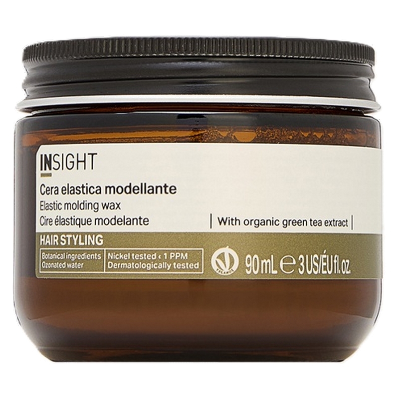 Insight Hair Styling Elastic Molding Wax er en stylingvoks, der giver let til medium hold med en mat finish.