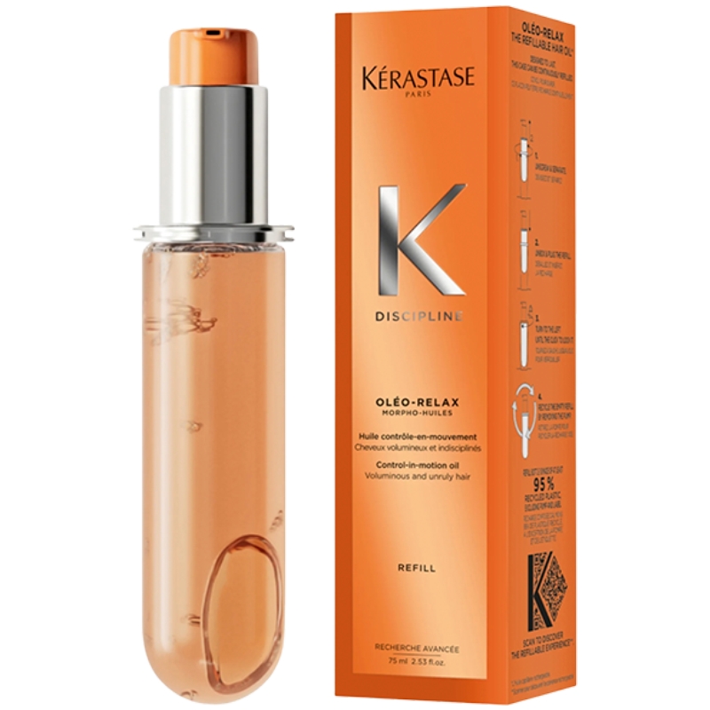 Kérastase Discipline Oléo-Relax Hair Oil Refill 75 ml er en genopfyldning til Oléo-Relax hårolien, der er udviklet til krøllet, kruset og tykt hår.