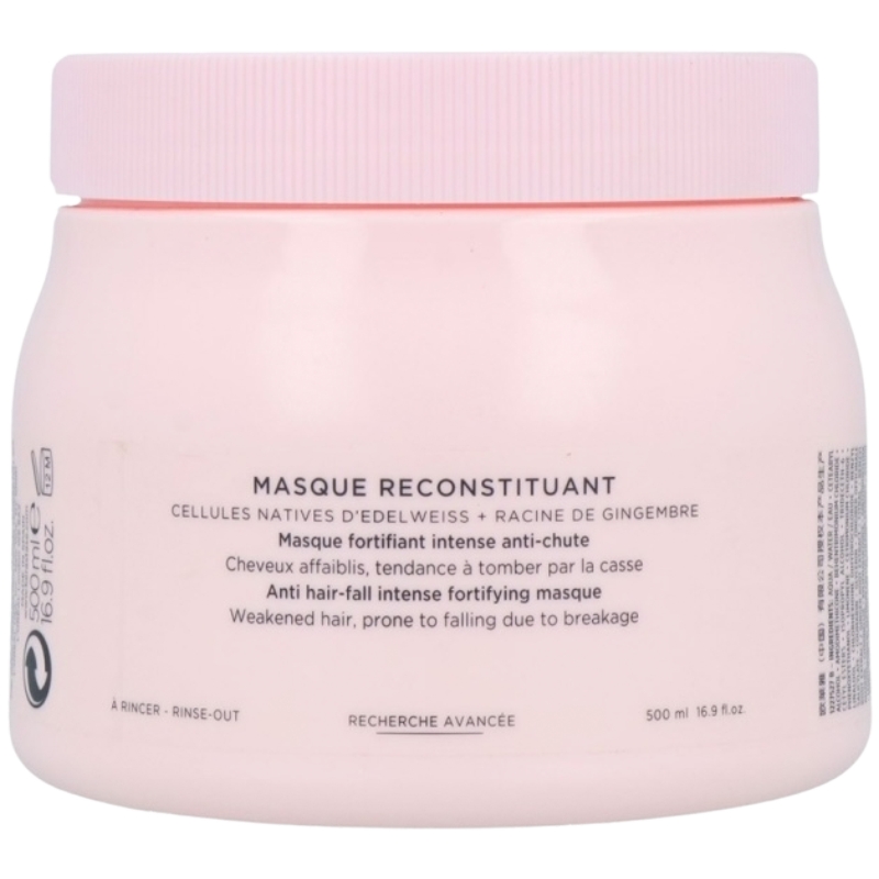 Kérastase Genesis Masque Reconstituant 500 ml er en hårmaske til skadet hår der trænger til intens fugt og pleje. Indeholder naturlig edelweiss og ingefærrod, der har en styrkende og blødgørende effekt på et hår der har tendens til at knække. Den styrker svækkede hårstrå og forstærker hårfibrene. Kuren virker blødgørende og efterlader håret glansfuldt.