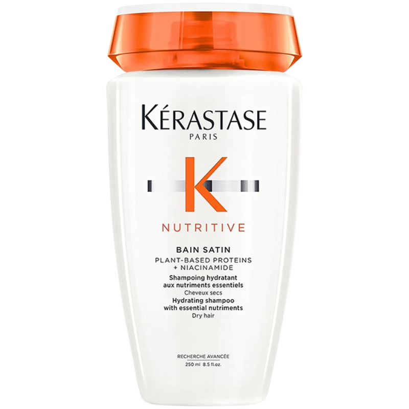 Kérastase Nutritive Bain Satin er en skånsom, fugtgivende shampoo, udviklet til tørt hår, der trænger til næring og styrke. En proteinbaseret shampoo, der renser tørt hår, gendanner tykkelse og glans og forbedrer fugtbalancen. Shampooen har en cremet gelkonsistens og giver en velplejet følelse til tørt hår.