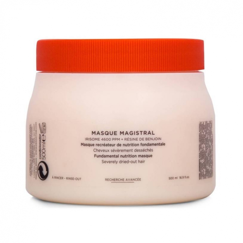 Kérastase Nutritive Masque Magistral 500ml er en nærende og fugtgivende hårkur til meget tørt hår. Den indeholder Irisome 4600ppm der er det mest nærende og plejende kompleks, der er skabt. Velegenet til kraftigt hår, der er ekstremt tørt. Efterlader dit hår gennemfugtet, blødt og velplejet.