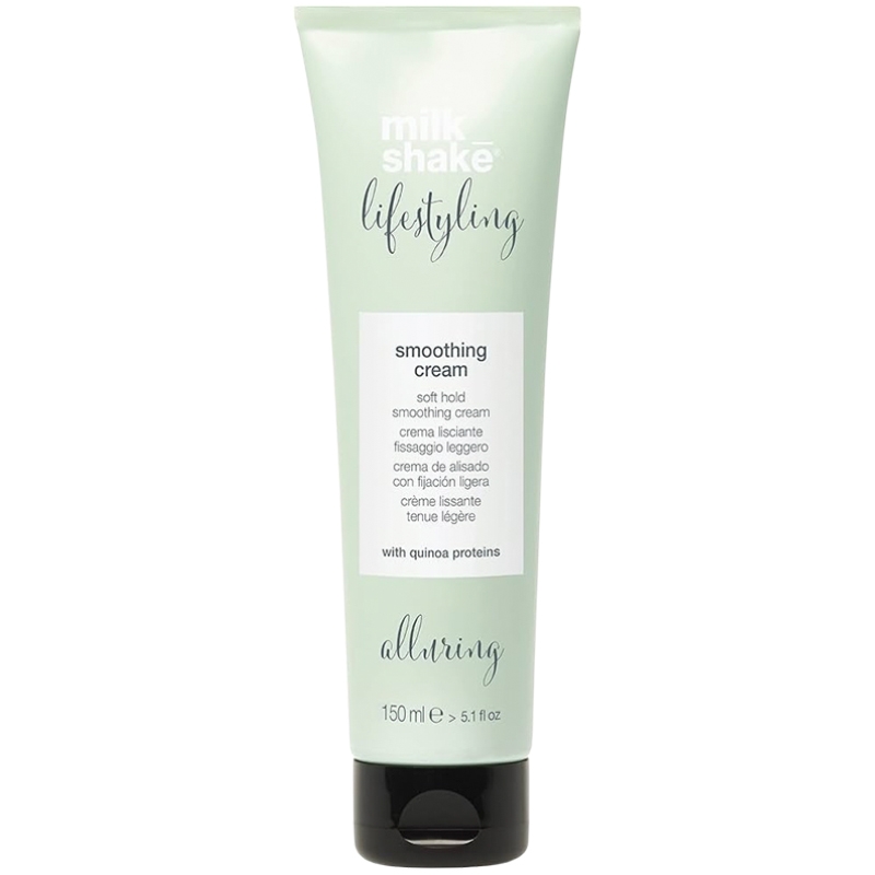 milk_shake Lifestyling Smoothing Cream er en styling creme, der udglatte skællaget, beskytter håret ved føntørring og giver et let hold. Den efterlader håret blødt og modvirker frizz. Lifestyling Smoothing Cream er også velegnet i krøllet hår, da den forhindrer krus. Indeholder quinoa proteiner, som har farvebeskyttende egenskaber.