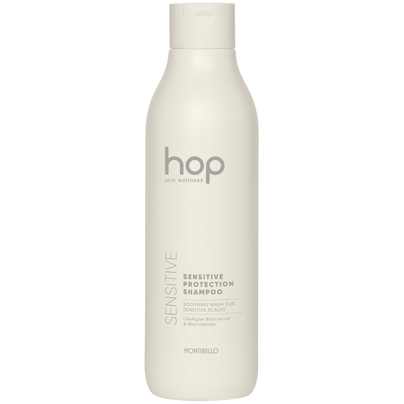 Montibello Hop Sensitive Protection Shampoo 1000ml er en beskyttende shampoo til følsom hovedbund. Den fugter, beroliger og beskytter hovedbunden imens den fjerner urenheder fra hår og hovedbund. Efterlader håret fugtet, blødt og let.