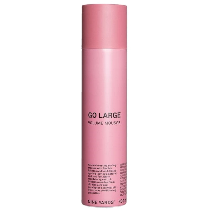 Nine Yards Go Large Volume Mousse giver lækker volume med fleksibelt hold. Håret bevarer en naturlig følelse - blot med fuld kontrol over håret. Indeholder olie fra smalbladet kæruld, æteriske olie fra appelsin og aloe vera der giver håret glans.
