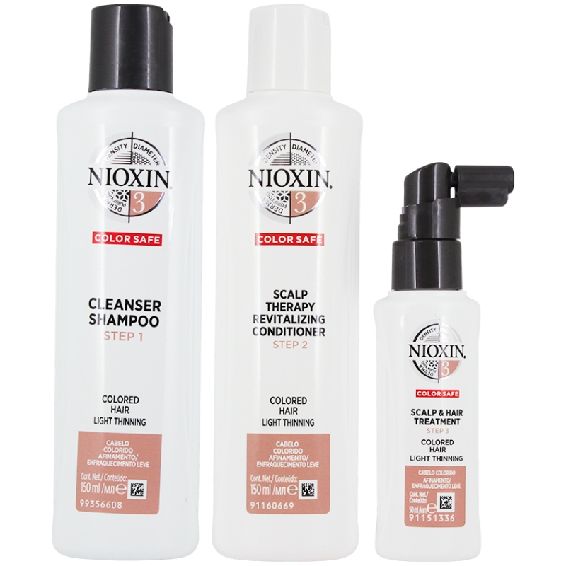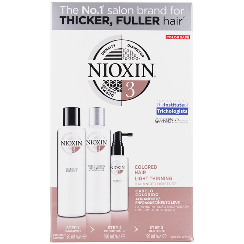 Nioxin Hair System Kit 3 er et 3-trins-system til at genoprette og bringe vitalitet og volumen tilbage i det fine/normal til tynde hår. BioAmp ™ tilføjer tykkelse og styrke. Glyco-Colour Shield ™ Dual teknologi til beskyttelse er designet til at beskytte hovedbundens hud og hår. Transactive Delivery System ™ leverer vigtige næringsstoffer på hovedbunden, der forbedrer udseendet af tyndere hår og skaber et miljø for fyldigere, sundere udseende hår.