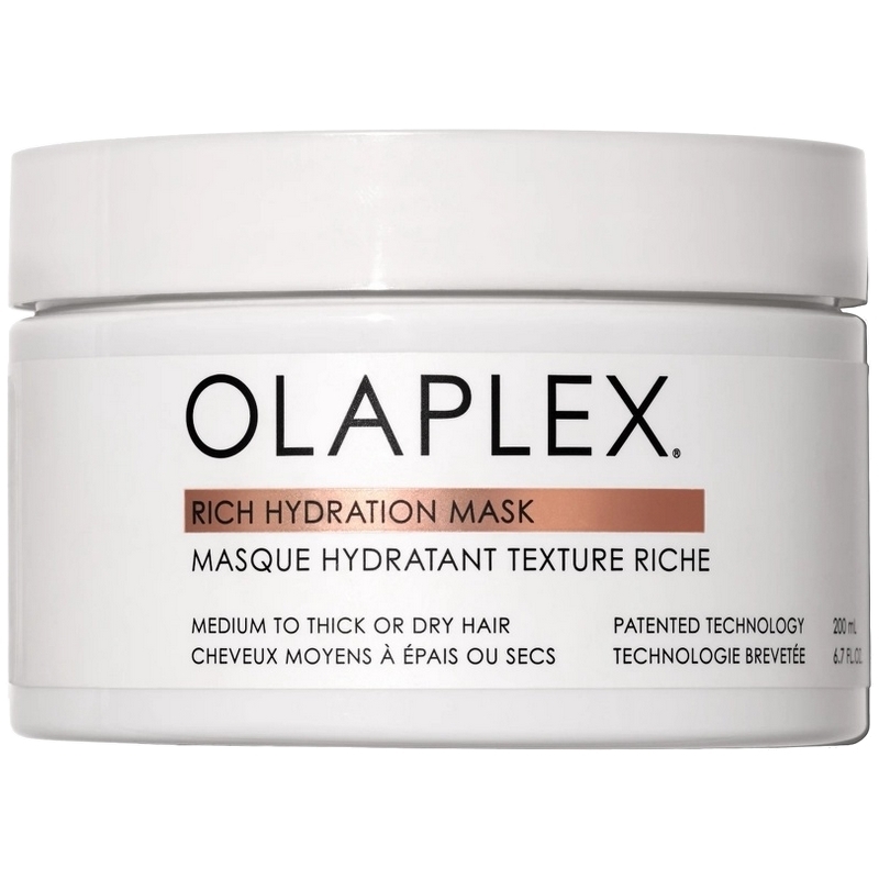 Olaplex Rich Hydration Mask er en intensivt plejende hårmaske til medium / kraftigt tørt hår. Den fugter i dybden og efterlader håret blødt, smidigt og medgørligt. Hårstrået forsegles så glansen øges, den reducerer frizz og beskytter håret mod udtørring.