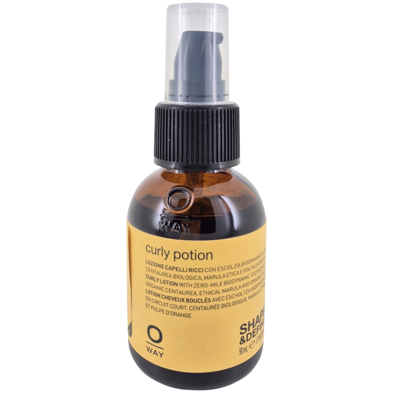 Oway Curly Potion 50ml er en lotion til krøllet og permanentet hår. Lotionen former og fugter krøllerne, og skaber smuk definition. Den tæmmer uregerlige krøller, og skaber et mere spændstigt krøl.