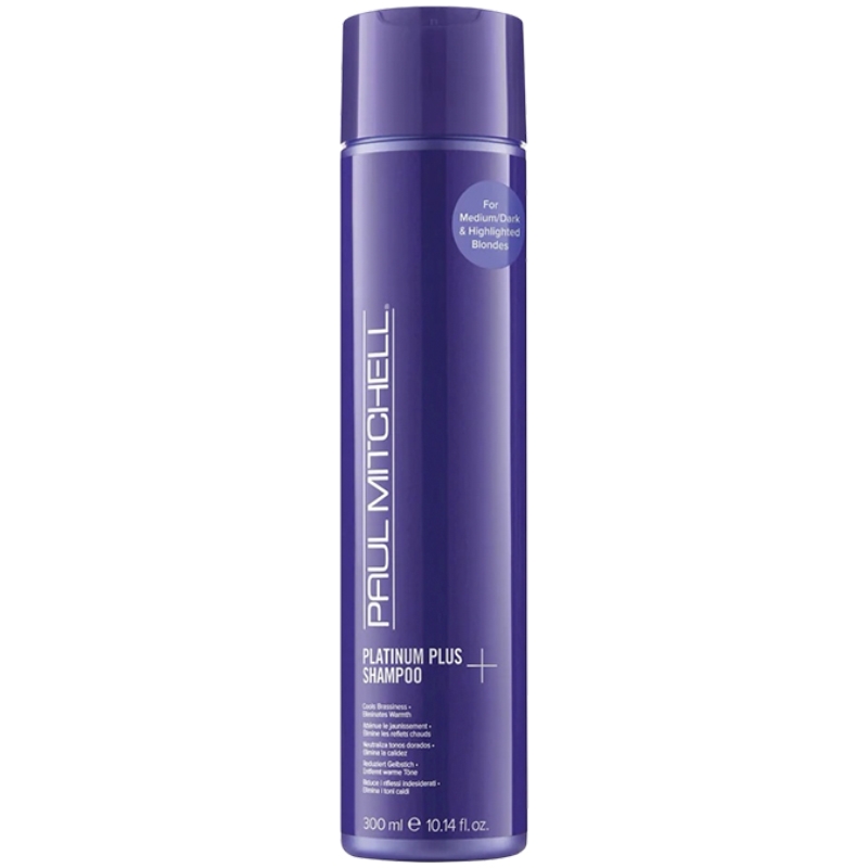Paul Mitchell Platinum Plus Shampoo er en intensiv farvekorrigerende shampoo, der reducerer uønskede gule og varme toner i blondt og gråt hår.