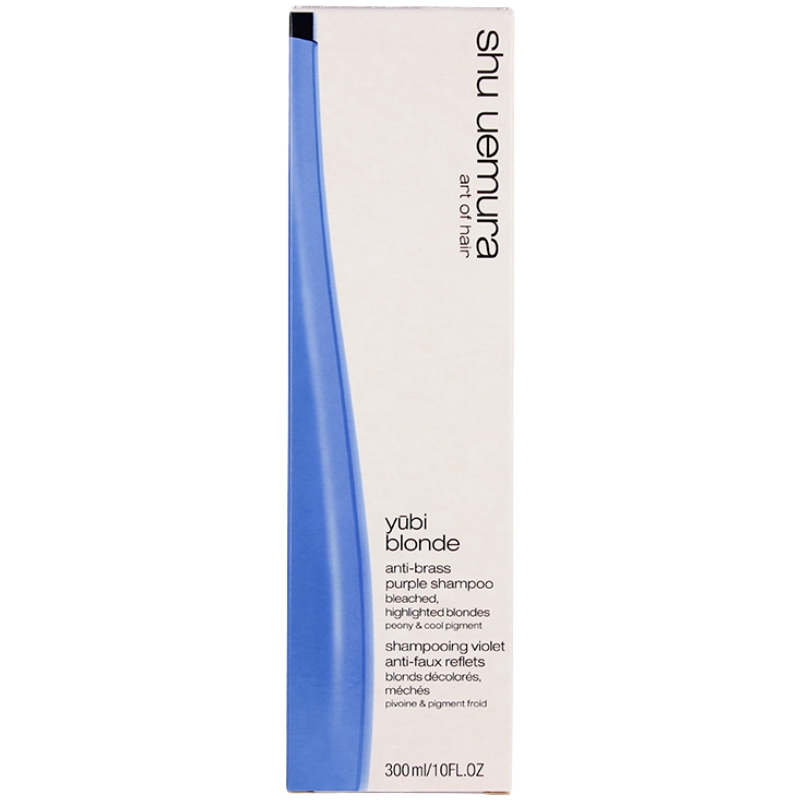 Shu Uemura Yübi Blonde Anti-Brass Purple Shampoo er en farvekorrigerende shampoo, der neutraliserer uønskede varme og gyldne toner i blondt hår.