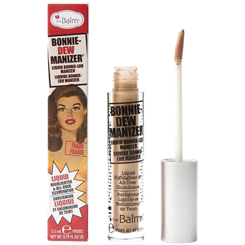 The Balm Bonnie-Dew Manizer Liquid Highlighter And All-Over Illuminator er en flydende highlighter, med en lys reflekterende gylden nuance, som tilfører glød til ansigtet, og lysner dine bedste ansigtstræk op. Anvend den hvor du ønsker at lysne op og fremhæve. Dens formel sætter sig meget hurtig og gør den meget holdbar. Påfør det ønskede sted og blend den ud med det samme. Skaber et super lækkert diva look!