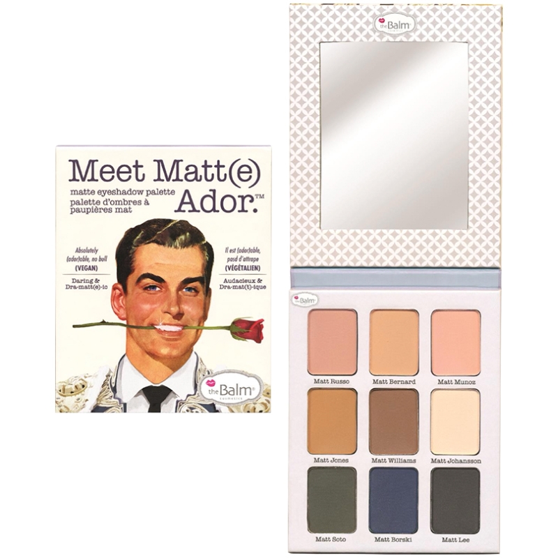 The Balm Meet Matt(e) Ador palette er en fantastisk øjenskygge-palette med 9 skønne farver. Øjenskyggerne har en fløjlsglat tekstur og en højpigmenteret formel, så du kan skabe lige det look du ønsker.