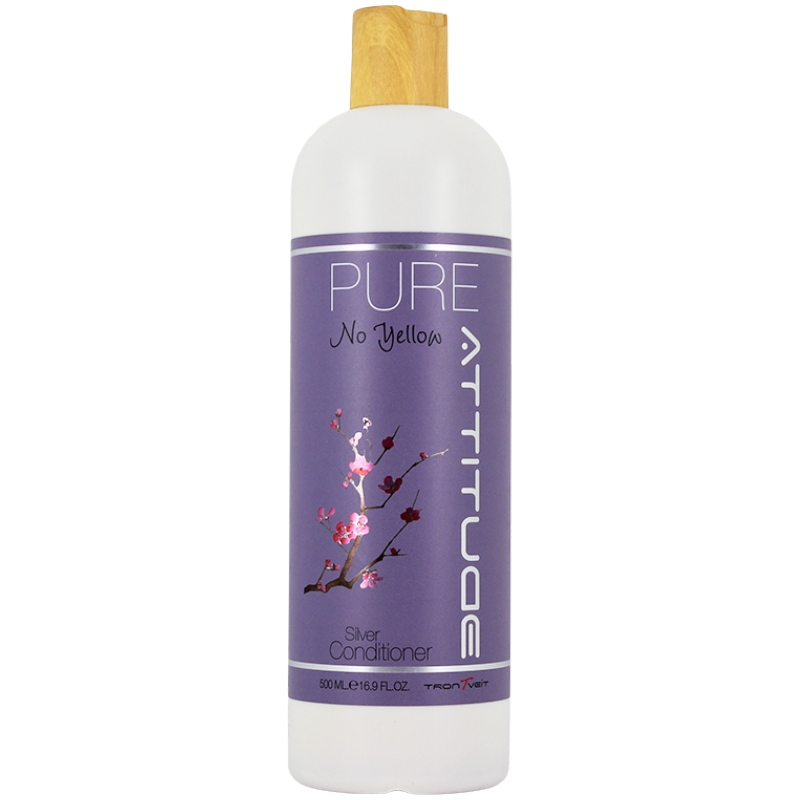 Trontveit Attitude Pure No Yellow Silver Conditioner er en plejende balsam, der fremhæver kolde toner i lyst og gråt hår.