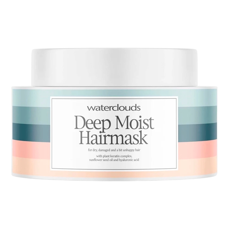 Waterclouds Moist Deep Moist Hairmask er en dybdevirkende hårmaske, der giver intensiv fugt og næring til tørt og belastet hår. Den indeholder nærende ingredienser som kokosolie, sheasmør og aloe vera, der genopbygger og styrker håret, så det bliver blødt, glat og glansfuldt.