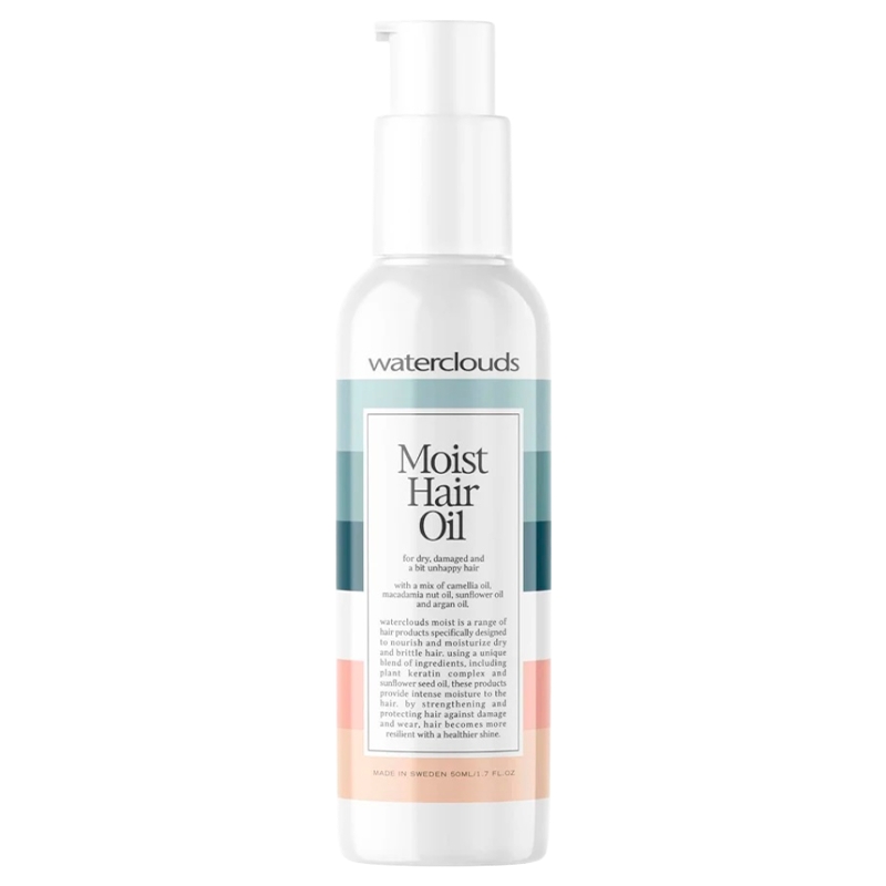 Waterclouds Moist Hair Oil er en lækker olie, der genopretter og nærer tørt og skadet hår. Den indeholder en blanding af nærende olier, og trænger dybt ind i håret for at tilføre intens fugt. Håret efterlades silkeblødt, glansfuldt og velduftende. Denne fugtgivende hårolie kan bruges i både vådt og tørt hår.