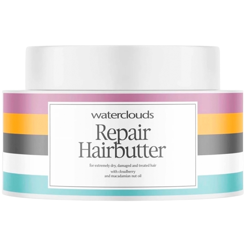 Waterclouds Repair Hairbutter er en hårkur til tørt, beskadiget og behandlet hår. Den gør håret blødt uden at tynge det ned. Cloudberry og Macadamia Oil, fugter håret og hovedbunden, og giver håret en glat overflade med glans. Provitamin B5 binder fugt og beskytter dit hår mod dehydrering.