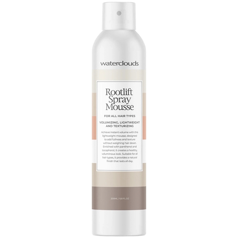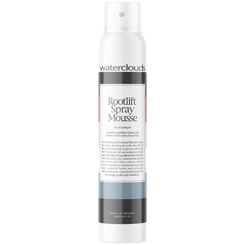 Waterclouds Rootlift Spray Mousse giver fylde fra hårrødderne. Velegnet til alle hårtyper, og den giver håret et naturligt og luftigt udseende uden at tynge det. En fugtgivende mousse på spray, der giver volume, blødhed og glans.