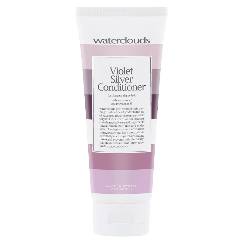 Waterclouds Violet Silver Conditioner er en conditioner med lilla farvepigment. Den neutraliserer uønskede gule toner i blond og gråt hår. Indeholder lavendel, som beroliger håret,og provitamin B5 beskytter håret mod dehydrering.