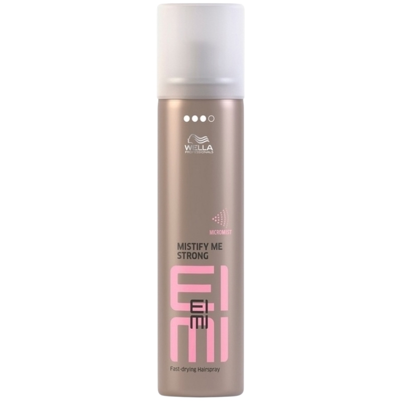 Wella EIMI Mistify Me Strong 75ml er en effektiv og hurtigtørrende hårspray. Den giver stærkt hold og skaber øjeblikkelig hold på frisuren. Sprayen har ekstra fin spredning, som giver et godt hold i op til 24 timer. Børstes let ud af håret.