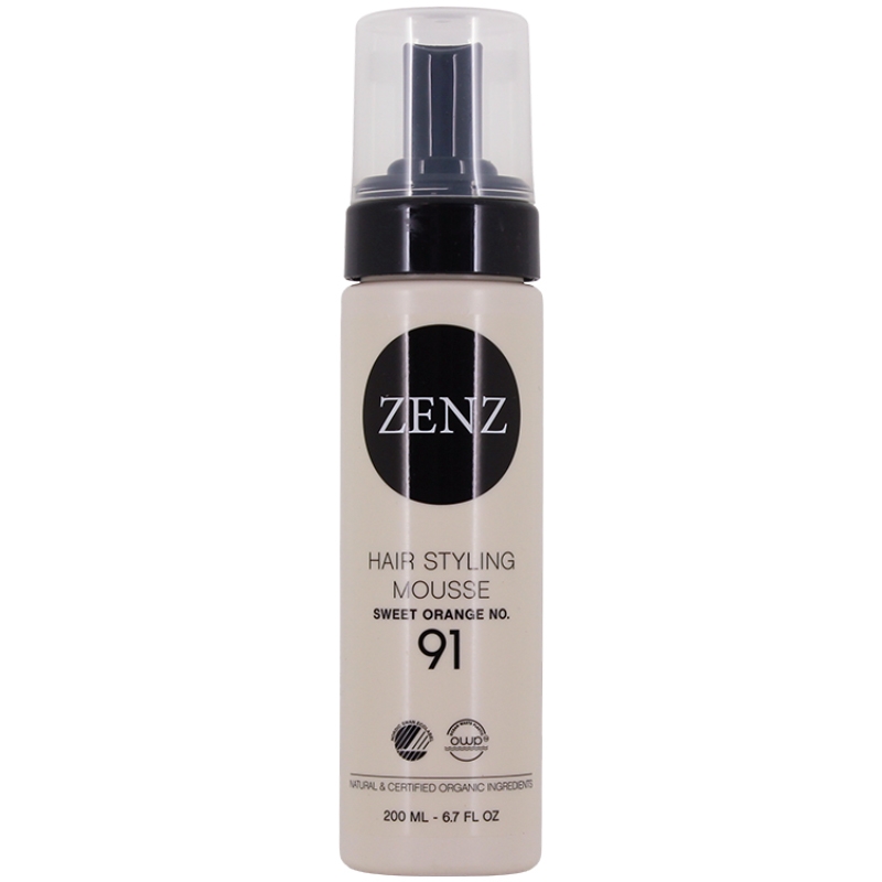 Zenz Sweet Orange no. 91 Hair Styling Mousse er en hårmousse, velegner til krøllet hår. Den giver stærkt hold og indeholder naturlige ingredienser, der styrker, reparerer og genopbygger skadet hår. Moussen giver varmebeskyttelseog er vandbaseret, så den er let at vaske ud igen.